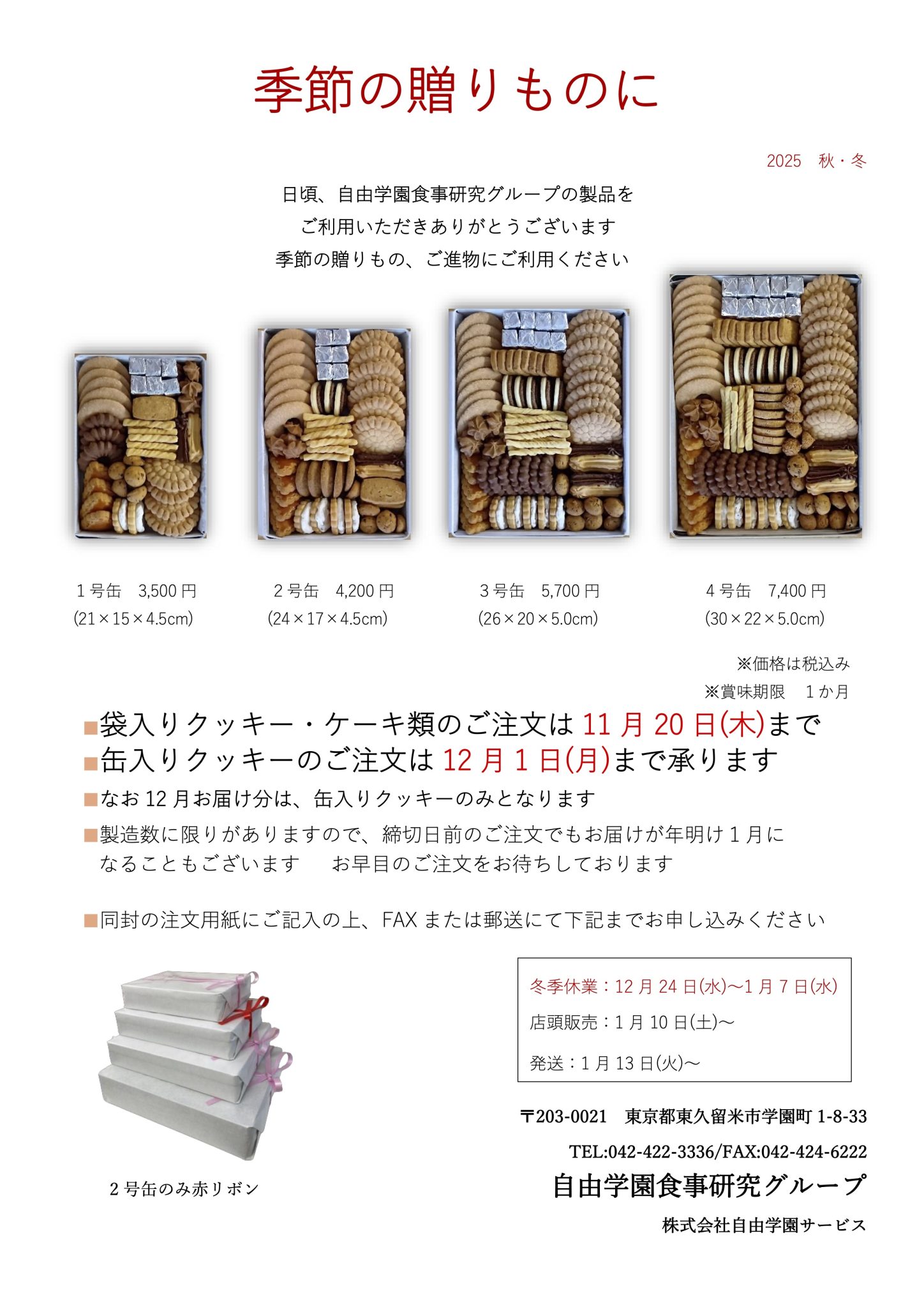 製品案内自由学園食事研究グループは1946年より、自由学園の「食」に関する勉強を活かした活動をしてまいりました。 |